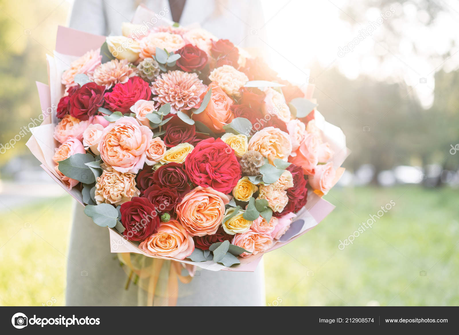 Peach Colored Flowers Bouquet / Bridal Bouquet And Boutonniere Red And Peach Color Flowers Stock Photo Image By C Malkovkosta 158155582 : Classic style bouquet with peach, red roses, peonies, silk.